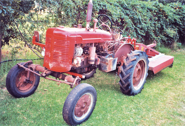 I have had this little Farmall Super A tractor for quite a long while now, and have restored and adjusted it to suit my needs. I found that the 15” rims from a four stud Volkswagon are the same internal diameter; a little wider, but the three lugs still lock them on.